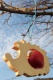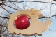 Яблоко вешается на специальную шпильку, которая высовывается и засовывается через отверстие. Во внутрь можно цеплять не только яблока, а и сало, хлеб.