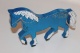 Синяя деревянная лошадь - раскрашенная акриловыми красками. Игрушка лошади устойчиво стоит на ногах в вертикальном положении. Также ее можно приклеить к специальной подставке и ее можно использовать в качестве статуэтки. Фигурку лошади можно использовать в качестве игрушки для детей, сувенира, игрушки на елку - в ней есть отверстие в которое заводится веревочка и вешается на елку.