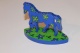 Размеры синей маленькой лошадки в сантиметрах: длинна 9 см, высота 8 см, толщина 1.3см. Размеры подставки к которой приклеинная лошадь : длинна 10см, ширина посредине 5 см, толщина 1.2см.